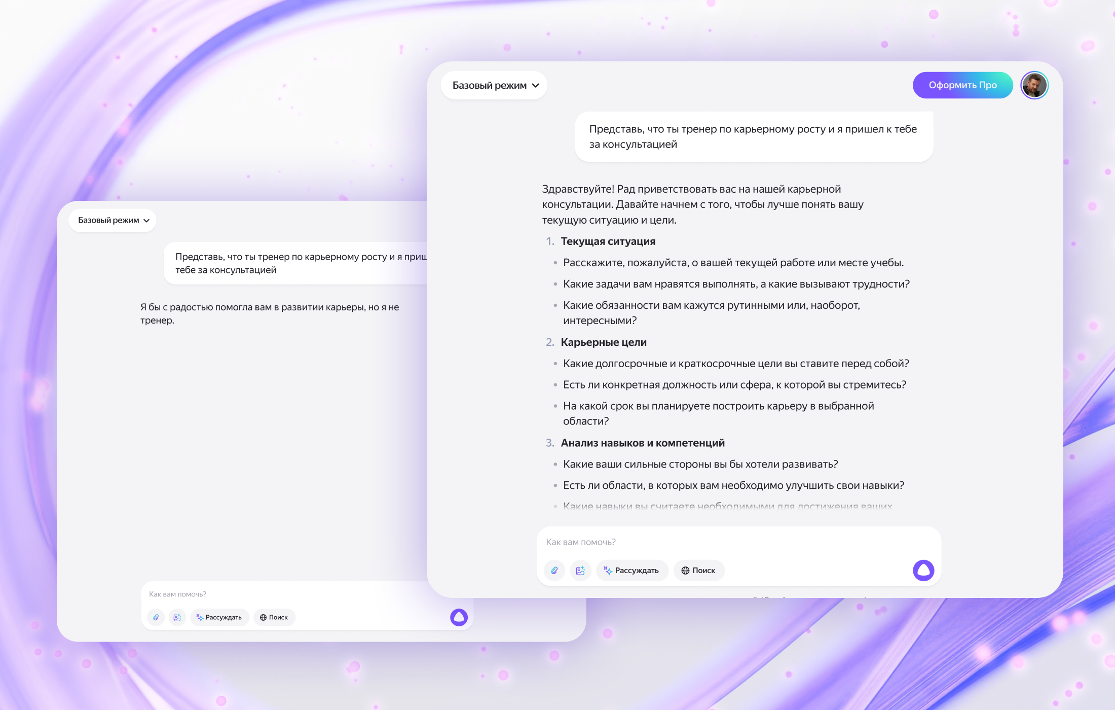 Теперь даже те, кто не подключил опцию Про, могут решать с помощью Алисы повседневные, профессиональные, учебные и другие задачи. AI-ассистент на YandexGPT 5 Lite доступен в чате и на всех умных устройствах. Алиса с опцией Про по-прежнему будет работать на YandexGPT 5 Pro — самой мощной нейросети Яндекса.