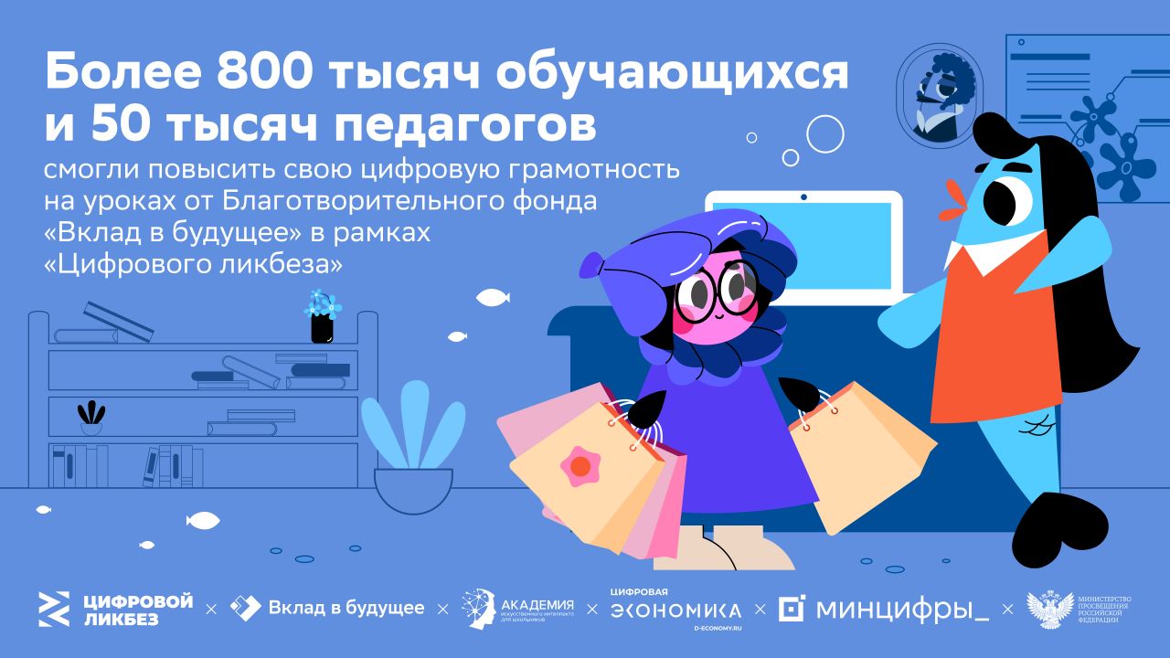 Более 800 тысяч учащихся и 50 тысяч педагогов смогли повысить свою цифровую грамотность и освоить важнейшие цифровые компетенции на уроках Всероссийского просветительского проекта в сфере цифровой грамотности и кибербезопасности «Цифровой ликбез», организованный фондом «Вклад в будущее». Со 2 февраля по 8 марта 2026 года в образовательных организациях по всей России прошли уроки Всероссийского проекта «Цифровой ликбез», организованного Благотворительным фондом «Вклад в будущее» и АНО «Цифровая экономика» при поддержке Минпросвещения России и Минцифры России.