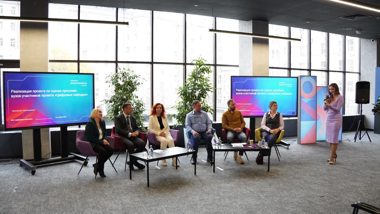 Эксперты обсудили актуальность и ценность проекта «Цифровые кафедры»; ключевые итоги проекта по верификации образовательных программ вузов-участников в 2025 году; взаимодействие бизнеса и вузов; вызовы, барьеры и возможности в части обеспечения экономики России качественными специалистами с компетенциями в области ИТ.