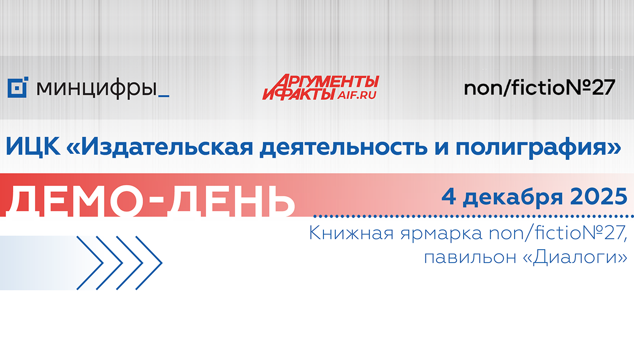 4 декабря 2025 г. в рамках ярмарки интеллектуальной литературы non/fictio№27 в Гостином дворе с 12:00 до 13:45 в павильоне «Диалоги» состоится демо-день индустриального центра компетенций «Издательская деятельность и полиграфия».